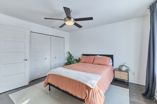 Condo chaleureux offrant un cadre de vie confortable et pratique. Cette unité de 2 chambres propose une belle luminosité et un espace de vie accueillant, parfait pour un couple, une petite famille ou un professionnel. La salle de bain moderne est munie d'une douche vitrée, ajoutant une touche contemporaine et élégante.