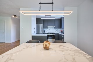 La cuisine a été entièrement refaite avec goût, mettant en vedette des comptoirs et un dosseret en quartz qui allient élégance et durabilité. Plusieurs améliorations ont été apportées à l'unité, dont l'insonorisation de plusieurs murs et planchers pour une tranquillité optimale.